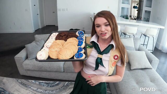 वर्णन: Mazy finds her old Scout uniform and uses it to tease her boyfriend.
