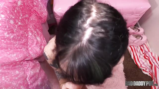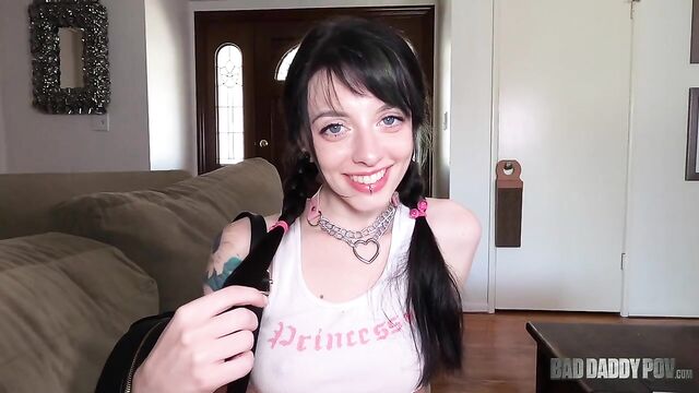 Description:Sexy inked teen Kitty Kam wants her stepdads cock, and she won't stop until she has his big dick inside her tight pink pussy. Watch as this young babe begs her stepdaddy to fuck her until she cums all over him.