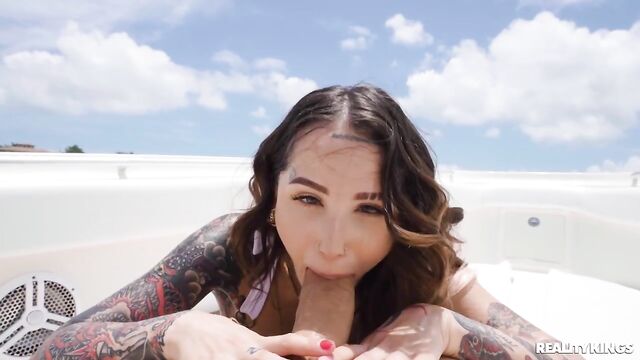 Description:Jmac and his buddies are ready for a nice day of fishing out on the boat when they spot Valerica Steele alone on the dock after her friends ditched her! They invite her aboard to hang out, and she's so enamored of Jmac's big rod that she starts sucking it. They try to be sneaky and fuck in the bathroom, but after his friend catches them, Valerica rides that huge dick on the deck until she squirts over the bow, then takes a big load on her face.