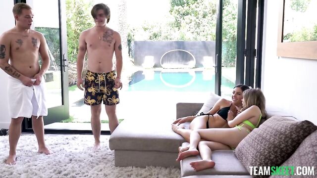 Description:The Von Skeets are a cunning family and use their prosperity and charm to allure everyone around them. Jack and Penny are the heads of the household and work as psychologists known for their unconventional methods. They have a ravenous appetite for sex and love everything kinky and taboo. Then there is Theodora and Tyler, stepsiblings with the same sexual appetite as their stepparents – but Theodora and Tyler might be even more insatiable for pleasure. Close by are the Badcoxx, another well-to-do family. Aaliyah and Calvin’s marriage is falling apart, and all they seem to do is argue anymore. Their stepkids, Coco and Josh, just want things to return to normal. When Theodora and Tyler meet Coco and Josh, they are immediately smitten with lust. Soon, they do everything in their power to seduce the other stepsiblings and corrupt their virgin minds. Coco and Josh are easily swayed and caught in the Von Skeets' plan. Tyler fucks Coco hard, and Theodora eagerly takes everything Josh has to offer. The four teens then swap, so it’s raunchy stepsibling-on-stepsibling sex. Soon after, Aaliyah and Calvin receive a mysterious flash drive. It contains hidden camera footage of Coco and Josh fucking in the Von Skeets’ pool. Mortified, Aaliyah and Calvin confront the Von Skeets, attempting to get to the bottom of this footage. Bewildered, Jack and Penny assume that their butler, Jay, must be the culprit and fire him on the spot. The Von Skeets assure the Badcoxx that the footage will never see the light of day. But their coyish plot does not end there, and Jack and Penny convince Aaliyah and Calvin to begin therapy. They agree, albeit skeptically, which sets the Badcoxx down a dark and intimate path of self-discovery. Everything quickly changes, and soon everyone gives in to their deep and unquenchable lust. See Aaliyah, Coco, Penny, Theodora, Calvin, Jack, Jay, Tyler, Josh, Freya, Link, London, Ophelia, and Rusty like you’ve never seen them before! This brand new feature-length Team Skeet Premium movie pushes the boundaries of all things taboo…