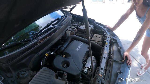 Description:Olivia’s car breaks down outside a random stranger’s house. When he goes out to try and help, she asks if she can go inside to cool off. Once inside, she strips down and pulls out sex toys to give him a sexy show.
