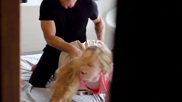 Description:Ivi Rein has an older boyfriend in Renato, and she loves to rub it in her stepbrother's face. Nikki Nutz tries to talk some sense into his stepsis, but Ivi refuses to hear it. Later, Renato is busy giving Ivi some rough treatment as they make out when Nikki walks by. He can't help but hover by the door as Renato plumbs Ivi's mouth with his thumb and then grabs her hair to get her on her knees for a spanking.Ivi knows Nikki is there. She eventually beckons for him to come in. Renato welcomes Nikki and asks if he wans to watch his stepsister get fucked. Not one to be picky about seeing a hottie like Ivi naked, Nikki comes in for some voyeurism. Renato keeps it rough as he undresses Ivi and face fucks her with his cock. Then he gets on his back and pulls Ivi on top to ride him in reverse cowgirl.Nikki keeps on watching as Renato rolls Ivi to bang her hard as they spoon. That leads to a reverse cowgirl pussy pounding with Renato's hand wound in Ivi's hair and the other around her neck to hold her in place. Another reverse cowgirl stint leads to Ivi on her back with Renato pistoning into her juicy snatch. She takes Renato's cock and his spankings on her belly, at which point she invites Nikki to join in. Ivi loves Nikki's hands pulling her hair as she sucks him down while taking Renato's fuck stick from behind. Then Renato gets to his feet so obedient Ivi can take a facial from two guys one after the other.