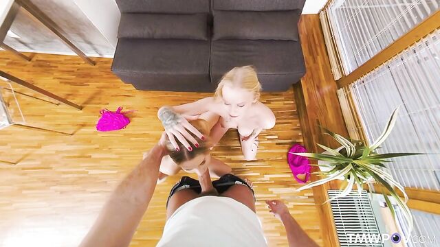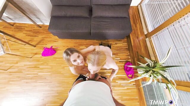 Description:Lucky Bee knows how to really please her boyfriend. But today, she decides to take their relationship to the next level. Since she knows that her boyfriend is attracted to her best friend Ariella Donovan, so she invites her to help them to get a magnificent threesome pleasure. The girls greet each other in their sexiest outfits before sensually touching every part of each other’s bodies. Then they get down on their knees and suck on his big cock together, preparing their wet pussies for a hot threesome fucking.