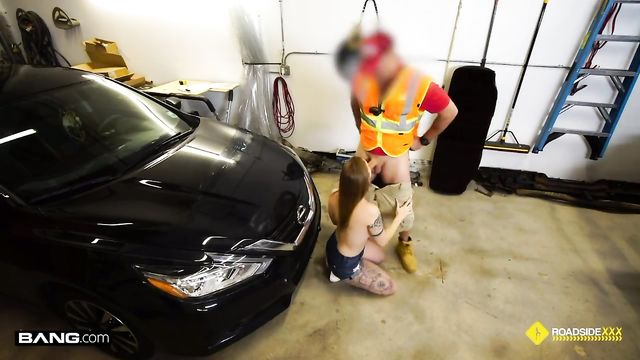 Description:Aria Kai gets her car fixed by the mechanic and she tries to bail from paying her bill! He chases her out and she hits him in the driveway! She doesn't have money to pay the bill so he allows her to suck his dick instead of paying the bill! She gets down on her hands and knees and sucks him off real good before bending over and getting fucked on the hood of the car!