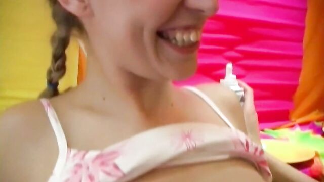 Description:Andrea and Stefani are a couple of cute lesbian girlfriends who love having some extra fun when they get together. Today it’s time for these naughty teens to taste some whipped cream and it does taste great when they lick it off one another’s lips and nipples. This kind of a sweet erotic prelude makes them both all wet down below and they follow with some hot dildo action taking turns in fucking one another orgasm.