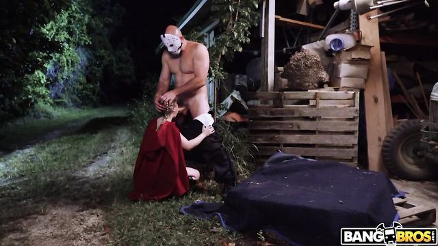 Description:It’s Halloween night and Kara Lee, dressed in a very sexy Little Red Riding Hood costume, is out looking for candy, she approaches a home, knocks on the door but nobody answers, only a disturbing sound can be heard in the distance, Kara feels attracted by the need to know what is this noise, where is it coming from, she starts walking towards the sound that becomes louder and louder, as she gets closer, she can see a masculine figure chopping wood with a chainsaw, little does she knows, she entered the domain of one of the most terrifying specters, she can't control her impulse and approaches him, touches him on the shoulder and violently he turns his head towards her, he wears a hockey mask, she screams, he attacks her and rips her top, she manages to escape but he starts chasing her until she trips and falls, she wants to save her life, so her only option is surrendering to his sexual desires.