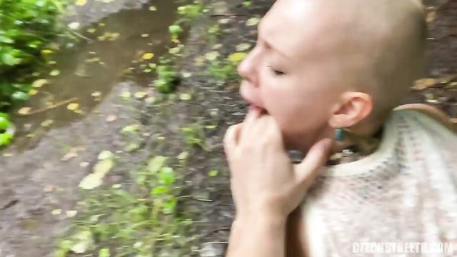 Description:Friends and fans of Czech Streets, you better sit down and pour yourself something strong. This could knock you down, and it would be really stupid when we all survived the corona in good health. In a quiet part of Prague, I discovered an incredible girl, with her shaved head like a knee. Her name is Laura, she is from Slovakia and she is 25yrs old. It started to rain and I wanted to chat her up quickly to show me if she is shaved down below too. The tattooed Laura turned out to be a tough rebel which likes to breake the rules. I had to get out 10K that she would take off her clothes and another 10K to let me in between her legs. I pushed my dick in to her mouth and dropped her into a large puddle. We worked on it in the mud, like animals. The bald rebel liked it so much that she flowed like melted butter. Guys, it was a massacre! I said goodbye to her by cumming on her bald head. So I can go home now and get the mud off me. I wonder what you're going to say. Have fun!