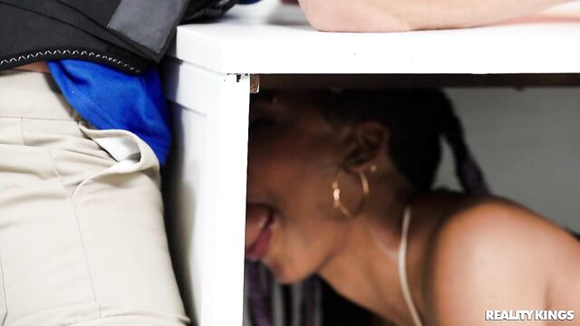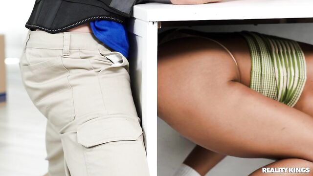 Description:Demi Sutra's on her last nerve when her boyfriend acts like a dick during their move, ordering her around and blaming her for his own mistakes, so she decides to treat herself to a better dick... the one in mover Mick Blue's pants. She shows Mick a secret glory hole in some furniture as she sucks him and gets fucked doggystyle, then sneaks away when her BF comes back. Mick finds her playing with her pussy in the kitchen as she squirts all over the box he's carrying, and then he fucks her face and her box! Demi makes sure the new place is fully hers as she marks it with her squirt before taking the mover's load.