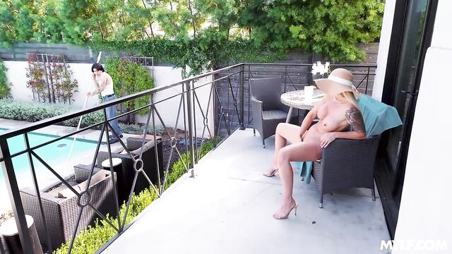 Description:Alexis is a lonely housewife whose husband is constantly away from home. Her weekends usually involve her doing the house chores all by herself. Yet, one day, she realizes that Elias, a horny and eager neighbor, likes peeping into her backyard, so she starts putting on a show for him. Soon, the boy will learn what vivacious homemakers do when their husbands are not around.