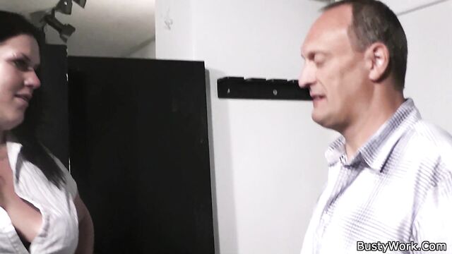 Busty Work प्रस्तुत करता है अनुरक्षक का मोटा चलचित्र