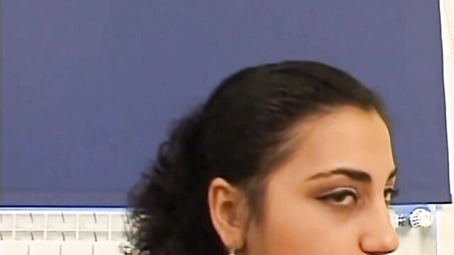 Description:Mirela has always dreamed of being with two guys at once but she hasn't had the chance just yet. So instead she hikes her pussy up on a dildo as she gives her man a blowjob.