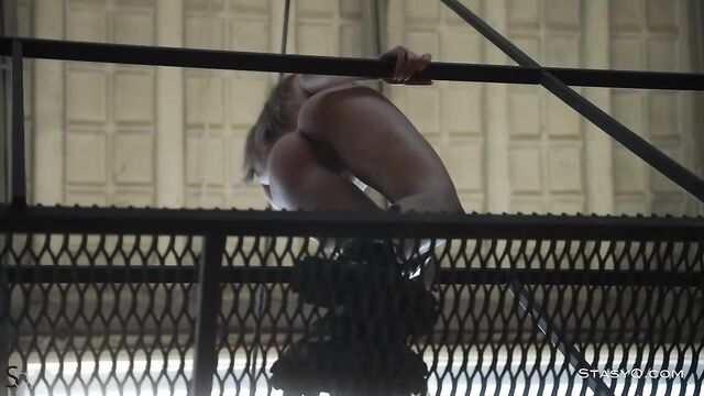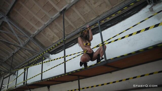 वर्णन: YaraQ continues to serve her feminine charms. This time, the bombastic brunette appears with headphones, glasses, and construction tape over her nipples. She is ready to rock your world and tear your inhibitions down. With her gaze fixed on Said Energizer and his camera, the sultry goddess walks around a construction site. Video Release 594 presents the naughty side of the StasyQ model who can't get enough of your attention. She starts the erotic spectacle by playing with her black panties, which she pulls over her gorgeous hips, only to begin exploring her waist, all the way up to her breasts. Soon enough, she takes her clothes off, leaving nothing on but a pair of boots, and begins dancing around softly, only to show you just how beautiful she is. Her skin is flawless and tanned, and the nipples are hardened with the touch of cool air. YaraQ is ready for you.