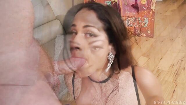 Description:Busty MILF Miss Raquel seems to have cock on the brain. The thickly curvaceous fellatrix teams up with porn pro Mark Wood for a nasty oral session. First comes a twerking tease sequence -- wearing lingerie, Miss Raquel shakes her plump caboose for the camera. She strips and caresses her tantalizing body. When Mark enters the frame, Miss Raquel immediately drops to her knees. Mark stuffs his meat into her mouth and reams her throat, with Raquel obediently lapping his balls and worshiping his boner. The deviant dude grips her hair for leverage, slam-fucking Raquel's gullet through a raunchy blowjob. Messy fucking fellatio climaxes with a creamy cum facial. Sperm drips from Miss Raquel's mouth. 'So fucking amazing!' says the impressed vixen.