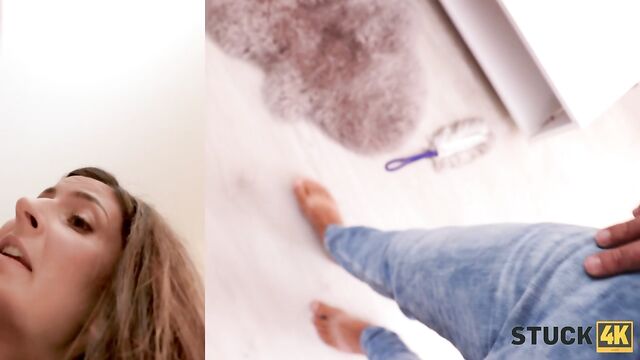 Description:April knew exactly what she wanted to do with her free time: she wanted to clean up her place. The living room was always the messiest one, so it had to be the last. After seeing a heap of garbage underneath the coffee table, April was rendered speechless. She reached over to clean up the mess, only to find herself stuck – her hand was now glued! - Hey, Jack, come over here for a second! – She called her boyfriend. A big, burly guy enters the room. He shoots a glance at his helpless girlfriend before cracking a smile. - Did you really spill the goddamn glue? – April asked with a hint of malice in her voice. Jack didn’t even hear her – his eyes were glued to that juicy booty of hers. He kneeled behind her, raised her skirt, grabbed his throbbing member…