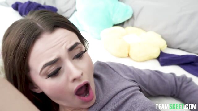 Description:This VIP series titled “My First” showcases exclusive girls shooting their first-ever type of scene right here with TeamSkeet. That means you lucky pervs get to be the first ever to see Nikki Nicole getting her pussy filled up with a fat load of cum. “My First” is truly something to behold because it’s pornography history in the making. You’re getting to see rising starlets make a name for themselves as they do everything to climb to the top. You won’t find exclusivity like this anywhere else! In this episode, Nikki has a big crush on her stepdad, Quinton. The way he looks at Nikki, you’d never suspect Quinton was getting to marry Nikki’s mother. It’s evident all he can think about is getting deep inside Nikki’s perfect tight pussy and fucking her until he’s busting a fat load. She fantasizes about him, too, imagining how it would feel to be filled up by him. Nikki soon gets her chance to see this dream come true, and Quinton holds nothing back. He is enamored by the girl's rosy nipples and her perfectly perky tits. She’s a stunning petite little thing, and he feels like he could give her the ride of a lifetime. Nikki hasn’t been fucked that many times, let alone creampied, but when Quinton thrusts his cock inside of her again and again, she can’t help but crave his seed. She quivers with delight as he takes full control of her, treating her little a tiny fuck toy and dominating her like a great new stepdad should. Quinton can’t believe how good Nikki’s pussy feels. For an innocent stepdaughter, she sure is freaky, and she can take dick like it’s nobody's business. Quinton cums hard for her, shooting every drop he can in her tight snatch. The cum oozes out of Nikki, dripping down from her pussy to her asshole.