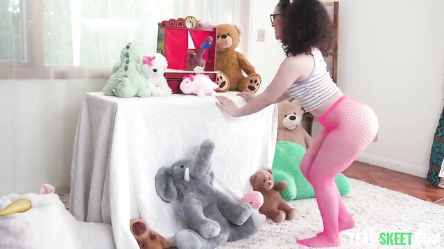 वर्णन: The gorgeous Pixie Smalls is thrilled! She just got a note saying there’ll be a puppet show downstairs at her own house and she can’t wait. After jumping on the bed in delight, the curly-haired petite babe rushes downstairs to find a small stage arranged in the living room. Shocked, she sits on the floor to watch this impromptu childish play at her place. It’s about a flying pilot who’s afraid of flying. But… the pilot puppet is in fact a penis with a costume! The pilot asks the only member of the audience to give him some love and cheer him up, so she kisses the cock. Soon, the show's over and Danny reveals himself! He planned this all along to surprise the beautiful Pixie. Now, he wants a little token of gratitude for his show, so Pixie gets down to business and gives Danny’s dick as much love as she showed to the pilot puppet. She is so delighted about the play that she wouldn’t mind her puppetmaster stuffing her up with his massive meat.
