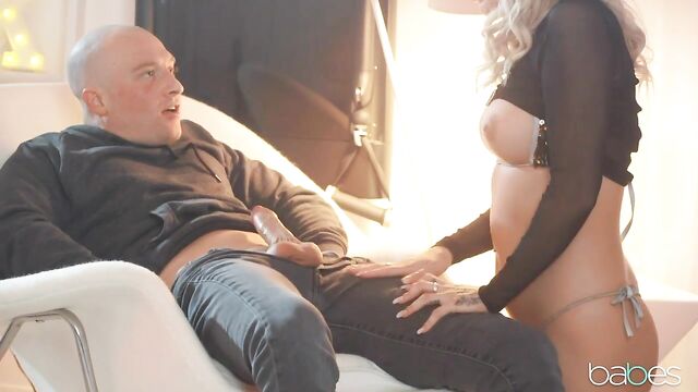 Description:Harmony Rivers is welcoming a shy new client to her lair, Zac Wild... He's awkward AF, but the gorgeous Harmony is an expert in turning shy guys into the lusty sex-lovers they really are! She teases him with a dripping hot lap-dance, before taking out his massive cock and sliding it straight down her throat for a sloppy blowjob.