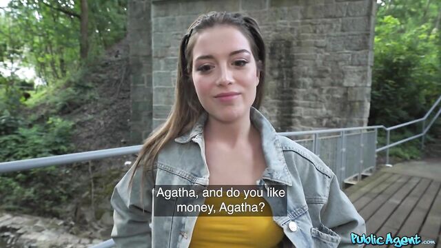 Description:I was feeling horny during my morning walk, so I started jerking off until a sexy brunette named Agatha Shay approached me. I offered her cash to make me cum, which she accepted. The Spanish babe let me play with her small, natural titties before treating me to a fantastic blowjob! Turned on, Agatha slid aside her thong and took a missionary-style pounding, and then she stuck out her curvy ass and invited me to bang her from behind in standing doggy. Next, the tattooed beauty bounced her pussy on my thick dick in cowgirl before sucking on it some more, and then she wanked me off until I came in her mouth!