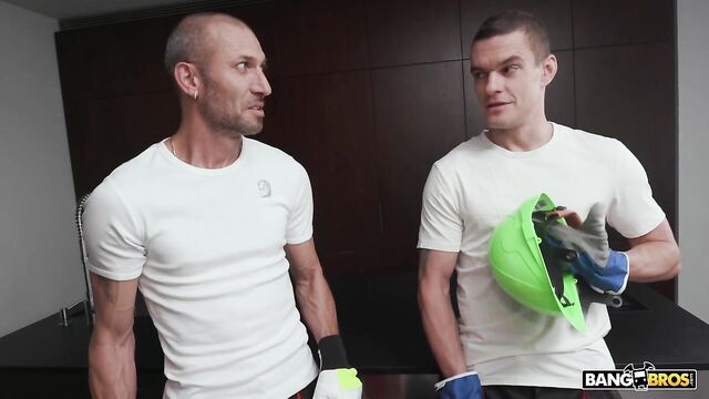 Description:Shalina Devine is in bed thinking of how she is going to get her pipes that are blocked fixed. After moving around in bed she gets the bright idea of calling The BangBrother Plumbing Co. They come in no time to help fix the situation. The thing is, that little do they know that there really isn’t any plumbing that needs to be fixed. She just wants some good dick to fix her satisfaction. Both plumbers seeing how hot and willing she is they jump in on the opportunity. After a good few sessions of baning, she wants more, and in her ass. She takes both giant cocks from all positions until they both jizz all over her face and big tits.
