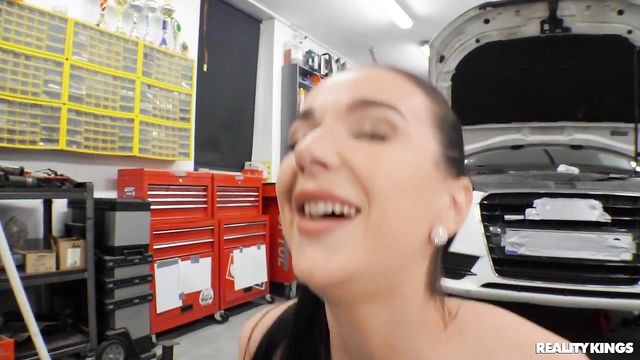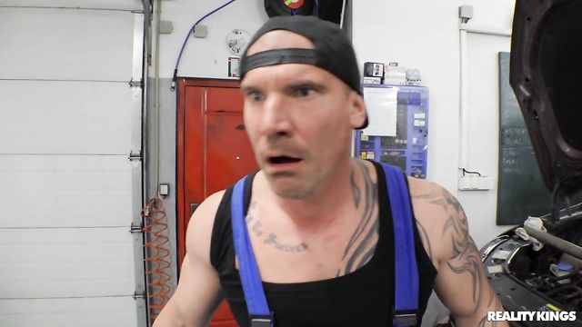 Description:Lady Gang brings her car in for her mechanic Erik Everhard to take a look, but when he comes out from under the car, she's standing over him to let him take a look at her pussy too! She sits on his face, 69ing him before riding his dick, when his coworkers Brian Ragnastone and Ian Scott come over to get in on the action. This horny nympho swallows all their dicks and even lets them put their big tools in her asshole before they double penetrate her!