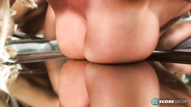 Description:Katie Thornton celebrates, checking out the magic mirror so you kinda get two Katies in this scene. The New Year's wish for many of her followers would be for Katie to become a TV weather-girl so all of us could watch her every morning. SCORELAND: Katie, what do you think are your best features? Katie: I think besides my boobs, my legs are my second best. SCORELAND: Many would say your face, even big-boob purists. Katie: A lot of women come over to me and ask me if they can touch my boobs. I'll say, "Yeah, go for it." I'm fine with that. I like women. SCORELAND: Who's better at eating pussy, men or women?