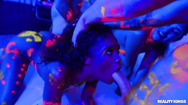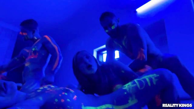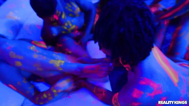 Description:It's the morning of the final day in the Project DTF house, so resident chef Oliver Flynn is in the kitchen making cinnamon rolls, while Diamond Banks busts in on Gizelle Blanco and Scarlit Scandal for a little pussy eating in the bedroom, and outside, Damon Dice and Mila Monet are fucking in the obstacle course. When Air Thugger comes upstairs to pound Gizelle's pussy, Scarlit heads outside to steal Damon away to suck him and get dicked down in the bounce house! After the delicious breakfast, Roxie Sinner rewards Oliver with a nice, lubed-up massage, then rides him till he cums on her big tits. The pornstars head outdoors for some fun in the sun, including a penis pinata, and after dark, they paint each other all over with glow paint for a black light orgy that ends with the guys painting the girls' faces with cum! It's always hard saying goodbye, but the Project DTF memories are sure to last a lifetime.