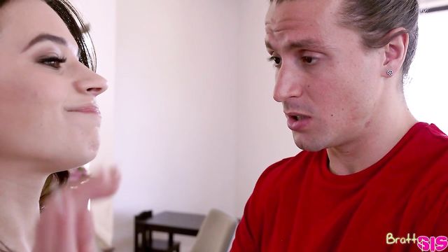 Description:Aria Valencia comes into the living room where her stepbrother, Jay Romero, is watching TV. When Jay comments on how many shopping bags Aria has, Aria admits that she has an impulse control issue. Jay tells Aria that he has an impulse control problem too. He wants to run up to random girls on the street and lift their shirts, then run his hands over their nipples until they're hard. Aria asks Jay to show her. She meant over her shirt, but when Jay lifts her shirt and gives her a true hands-on demonstration Aria doesn't stop him. Jay's embarrassment is overwhelming when Aria opens up that she wasn't expecting him to rub her boobs, so he runs out of the room.Later, Aria and Jay are cleaning the dining room when Aria tries to make it up to her stepbrother by telling him that she has sexual impulses, too. She wants to go to guys and pull their pants down and play with the D while talking to the guy's mom like nothing is wrong. Aria then offers to let Jay play with her tits again. He does as Aria asks, then inquires whether that means she's going to try to play with his dick in front of his mom. They agree to role play instead of doing it for real since they all live together and Aria doesn't want to make things awkward. Talking out her fantasy as her hands play it through, Aria unzips Jay's pants and fondles him before saying she'd probably want to suck on his cock. Dropping to her knees, she makes good on that part by sliding Jay's hardon into her mouth for a sloppy deep throat BJ.The two stepsiblings don't try to fight it as their mutual impulses to fuck overwhelms them. Moving to the couch, Aria lays back and lifts one leg up so Jay can sink balls deep into that tight twat. Aria adjusts her position so she's on her hands and knees so that Jay can take her from behind. Then, Jay takes a seat so Aria can climb onto the cock and bounce away in reverse cowgirl stiffie ride. Getting off her stepbrother's dick and onto her knees between his legs, Aria resumes her blow job. As Jay gets closer to popping, Aria keeps on talking dirty about how much she fantasizes about him cumming all over himself right in front of his mom. That last bit gets Jay off, prompting him to blow his load for both of their satisfaction.