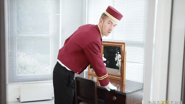 Description:When gorgeous Amber Jayne arrives at her Boutique Hotel, the eager bellhop, Danny D, is waiting to take her luggage. Amber's luggage is a handful and, as Danny checks out Amber's spectacular body, he wishes his hands were full with more than just her luggage! When Danny finally makes it up to Amber's room, he realizes that the amazing MILF is messaging her perfect pussy with the showerhead. Danny better strap on his bellhop hat tight because when dominant Amber catches him, it's going to be a wild ride!