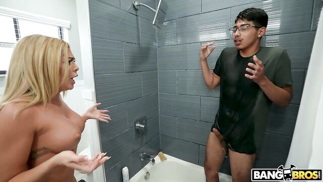 Description:Diego can’t seem to take his eyes off his stepmom Vivianne DeSilva. So much so that he snuck in the bathtub just to watch her change from behind the curtain. What he didn’t take into account was the fact that at one point or another she would turn the shower on. Which she did, Diego was in bliss as he jerked off to his stepmom. so much so that he didn’t even realize she turned it on. Diego was surprised as the cold water hit him directly in the face, making him freak out. This is when Vivianne caught him dick handed. At first she was annoyed but she quickly figured she could get a good quickie out of it. So she made a deal with her step son. They would fuck once just to get it out of his system. He agreed and soon he had his cock buried inside his step mom’s tight pussy. Vivianne took dick in multiple different positions before begging for a huge load all over her face.