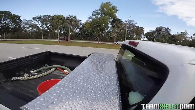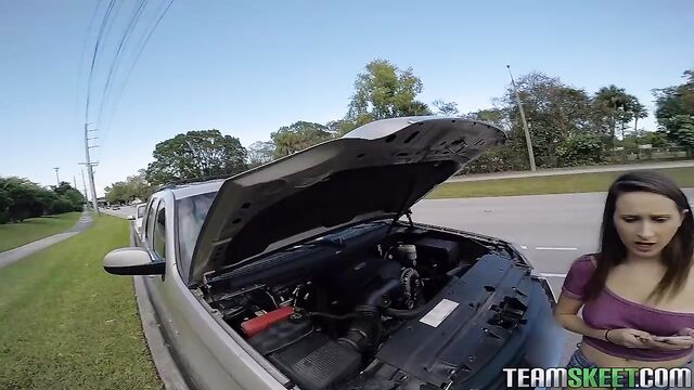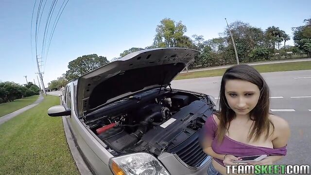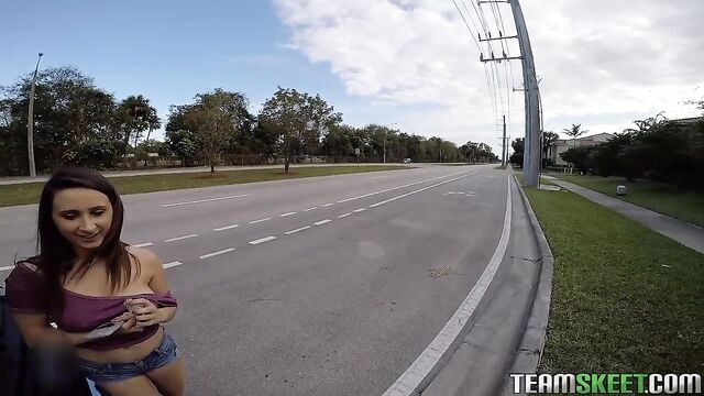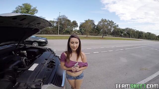 Description:I was driving down the street when I spotted Ashley. I could see her massive tits from like a half a mile away! She explained how she was having money troubles so I offered her a tow and a bit of extra cash if shed flash her tits to me in public! I asked if she was interested in making more money and she said she was so I offered her a few extra bucks to suck my dick in the car and she was more than okay with it! She went all out on my cock and got me nice and hard before I pulled over and fucked her tight teeny twat! Ashley rode my meat while I watched her big 36D titties bounce up and down on my face! Then I laid her down in the back of my car and fucked her missionary before spraying my seed all over her! She licked every last drop clean! She worked hard for her money!