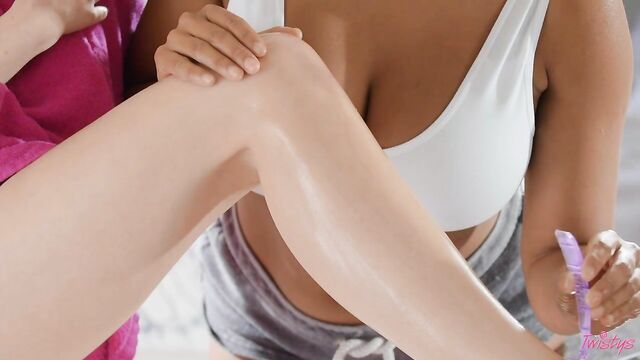 Description:After a nice bubble bath, cute blonde Lilly Bell prepares for her date by shaving her legs, as her roommate Luna Star joins her in the bathroom. When Lilly nicks herself, Luna offers to help, but she's just hoping to get close enough for a taste of her roomie's pussy! Lilly's never thought about branching out from her relationship before, but Luna's tongue on her clit and her big tits rubbing against Lilly's own feel so good... And she wants to make Luna feel good too...