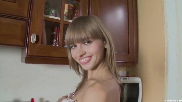 Description:Cindy has been waiting for her first time, and she'll have to wait just a little bit longer. Standing in her kitchen with just a flowery bra and panties and a cooking apron, Cindy can't help but feel sexually compelled to touch herself in places both naughty and sacred. Slowly shimmying out of her underwear, she peppers her clit with rounds with touching and finger-fucking, then she bangs herself silly with a rather fat dildo! Seeing her juicy snatch grease up and down that fucktoy is enough to give you a goddamn conniption fit of pure coed titillation!