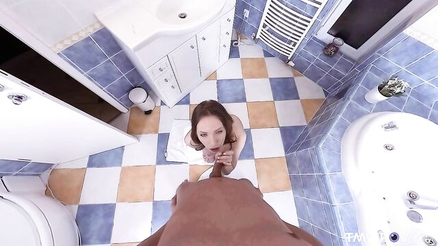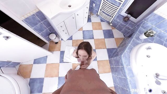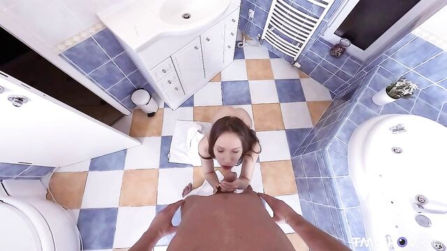 Description:The luscious beauty Linda Weasley gets up early to do her morning routine in the bathroom after a wild night with her boyfriend. She thinks that she is all alone, but she has no idea that her boyfriend is standing behind her and jerking off. She is very embarrassed when she finally notices him. But at the same time, she is ready to thank him in gratitude for a gorgeous night together. Linda gets down on her knees and starts sucking his dick to let him know how appreciative she is. She licks it like a lollipop, ready to do some sensuous pole riding. When she gets more turned on, she lets to fuck her right there on the bathroom floor. She rubs her clit while riding his hard cock with her wet pussy and moaning seductively until she orgasms all over his rod. Then she sticks her tongue out to take a creamy helping of cum like a good and grateful girl.