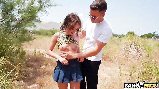 Description:Geisha Kyd was walking on a hiking path. It was so hot that she lifted her shirt and used a spray bottle on her face and tits. A group of men were watching her and when they were passing her they asked if they could use some of her water spray to cool down. She told them she lifted her shirt on purpose. She saw that they were watching her and she recognized Alberto Blanco as one of them. A pornstar with a huge dick! She offered she would cast on the spot for a port and she really wanted to get fucked hard. That was an offer Alberto could not refuse. He slapped and choked Geisha Kyd, squeezed and slapped her breasts. She gave his giant dick a wonderful bj with tons of throat. Then he fucked her. He fucked her hard. Her screams could be heard from miles away. He fucked her in all possible positions until she was unable to stand. He s**t his load into her face and she started to stumble away.
