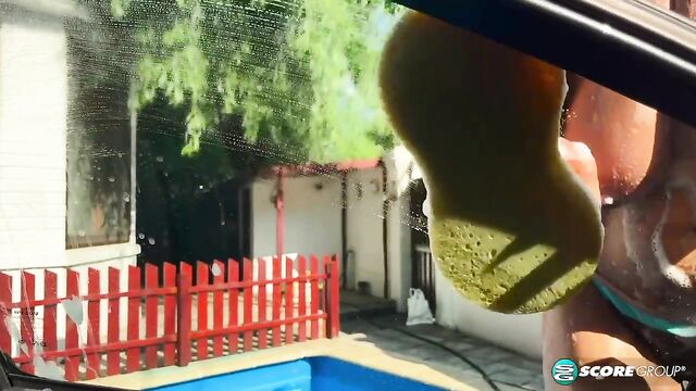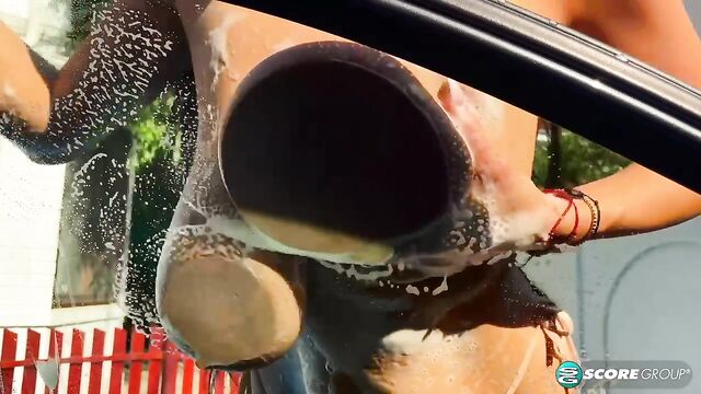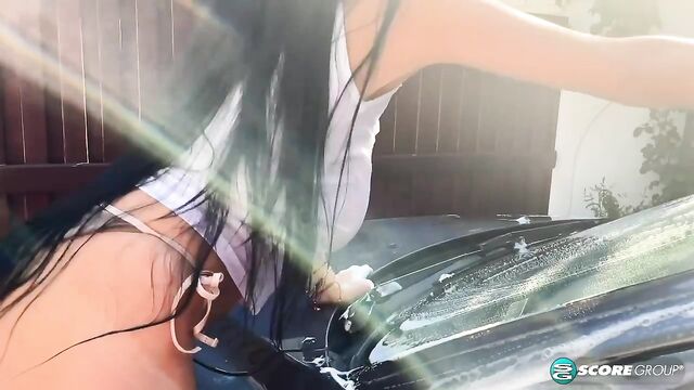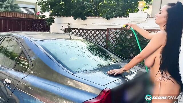 Description:Helen Star made our car wash dreams come true with this soapy scene. This is old-school, sexy babe auto-buffing with a hose, sponge and bucket. No automated roller machines to drive into. We've got Helen wearing a white tank that sticks to her lovely body and bikini bottoms. This is high-quality car maintenance. And the black-haired Romanian beauty does it in sky-high heels. Amazing. What a chassis. What a fantastic, load-bearing framework. Look at those bumpers. And the car is good-looking too. "I like to play in the shower," said the always cheery and happy Helen. She seems to be attracted to water. "I like to sing in the shower, too. I dream of having sex in a pool. "I like a lot of attention and I think it's fun to see men losing their minds over me and my cleavage. I like to dress very sexy, but it doesn't matter what I put on, my boobs stick out. Guys are always asking me questions about my body."