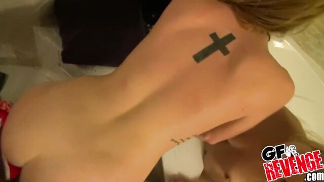 Description:Alex and Sally were just being girly and having fun with each other joking and taking selfies in the bathroom. Sally's boyfriend heard them and decided to intrude on their moment with his camera. He only meant to film them on their last day together before Alex headed off to college. But when he saw those sexy bodies and thongs, he started having naughty thoughts. The ladies sort of rejected his suggestion of a video, but didn't fight him on it when he kept filming them. Quickly, the selfies got more and more revealing, as titties started coming out. Then they started kissing and playing with each others tits and pussies. He could see where this was going, so he suggested that they hop in the tub together for a nice sudsy experience. After a while of convincing, they finally went for it. The girls initially just flirted, but that soon became all-out pussy eating. By then he was rock hard and wanted in on the action. Being such an awesome girlfriend, Sally thought of her man, pulled down his pants, and both the ladies started sucking away on his cock. It wasn't long before he was switching up between their pussies in a wild threesome and banging those HOT snatches right there in the bathroom. But in the end, he had enough jizz for both ladies and busted all over their sexy asses.