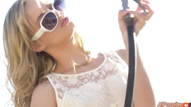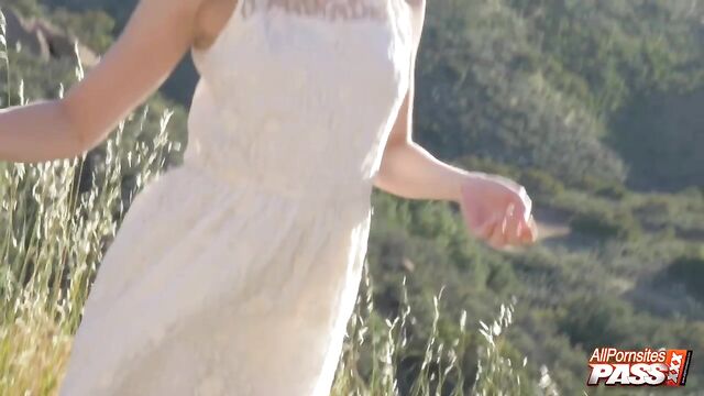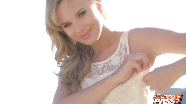 Description:Alright, we have the gorgeous Jillian Janson have fun outdoors. You'll get to see this stunning blonde beauty in a cute white dress pose provocatively. Next, we see her spread-legged and masturbating with her panties pulled aside.