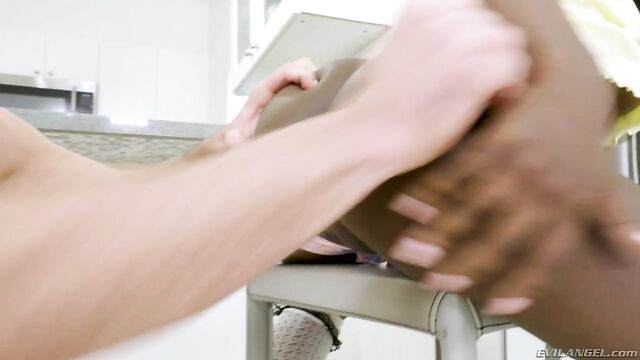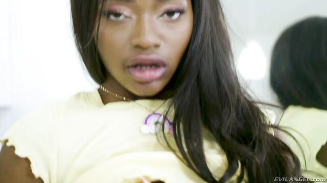 Description:Young, black sweetheart Noemie Bilas has never squirted, so the tiny, all-natural minx begs dominant Latino 'Daddy' Toni Ribas to teach her. Cute Noemie obediently spreads her booty for the older man; he shoves his big boner into the little slut's juicy pussy and then penetrates her tight asshole. She kneels to worship his meat and balls with her mouth. Toni chokes and spits on Noemie. He ruthlessly fucks her holes and fingers her to multiple wet, gushing climaxes. Finally, he cums all over her pretty face.